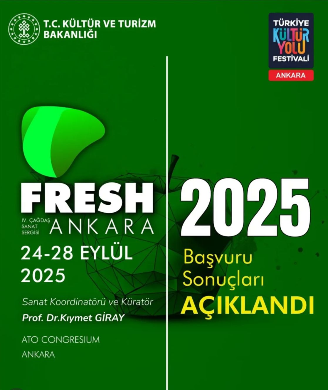 Resim Bölümü öğrencilerimiz Ayşe Nur GÜNAY, Ediz VAR, Sena KURNAZ, Beyza ARMAN, Aslı YÜCE ve Tuğçe EŞME, T.C. Kültür ve Turizm Bakanlığı’nın desteğiyle düzenlenen Türkiye Kültür Yolu Festivali kapsamındaki Fresh Ankara 4. Çağdaş Sanat Sergisi’nde eserleriyle yer alma hakkı kazanmıştır. Kıymetli öğrencimizi tebrik eder, başarılarının devamını dileriz.